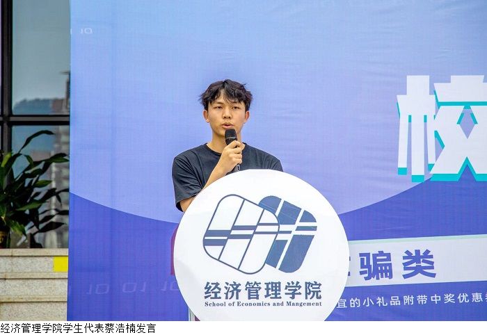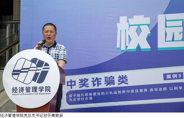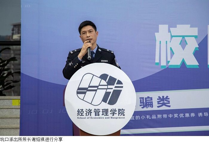 甘怀南在致辞中指出,网络发展导致诈骗手段不断翻新,他希望通过本次活动,可以提高同学们对网络诈骗的认识度,提高自我保护能力,共同营造安全的网络氛围。随后,魏甫龙老师给出了三点预防网络诈骗的建议:同学们不要轻信来历不明的信息,要稳固自己的心理防线,要提高自身的防范意识。侯小孩老师从刷单赚钱,网上借银行卡洗钱等方面分析,告诫同学们一定要提高警惕,保护好个人财产。谢所长通过讲述实际案例,剖析诈骗的常见套路,以此来提高同学们对电信诈骗的敏感度。他号召同学们下载注册“国家反诈中心APP“,提高自我保护能力。最后,员工代表蔡浩楠分享自己的感悟。他觉得本次反诈宣讲活动,能够有效帮助全院师生避免遭受诈骗损失,共同营造安全有序的校园环境。